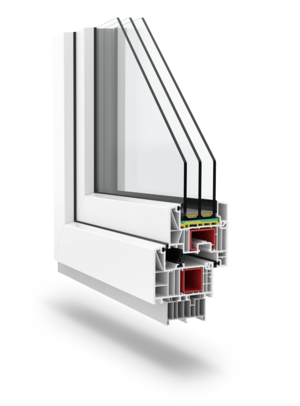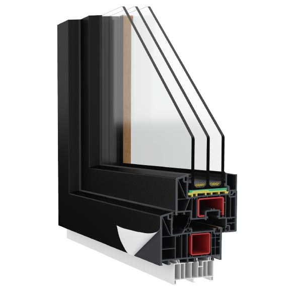 Energooszczędny 6-komorowy system profili o głębokości zabudowy 82 mm.