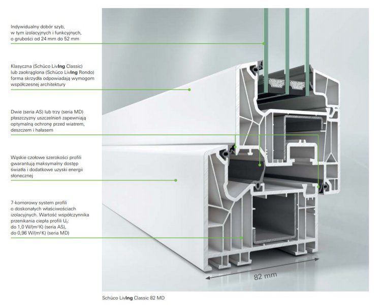 - 7 komorowy system profili schüco LivIng, głębokość zabudowy 82mm