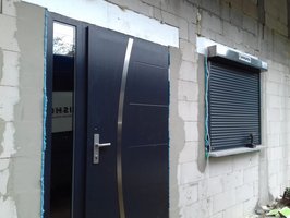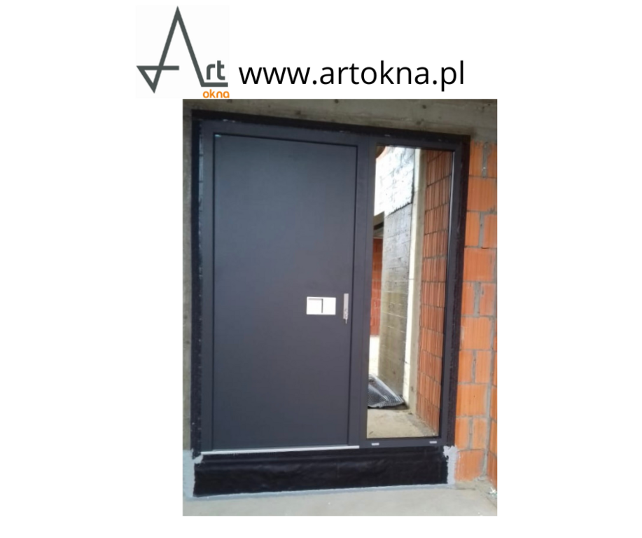 TP Lux skrzydło 90N+naświetle 35cm, okleina antracyt gładki+dąb turner, model Future Inox FI02A, klamka Tahoma, szyba w naświetlu reflex brąz